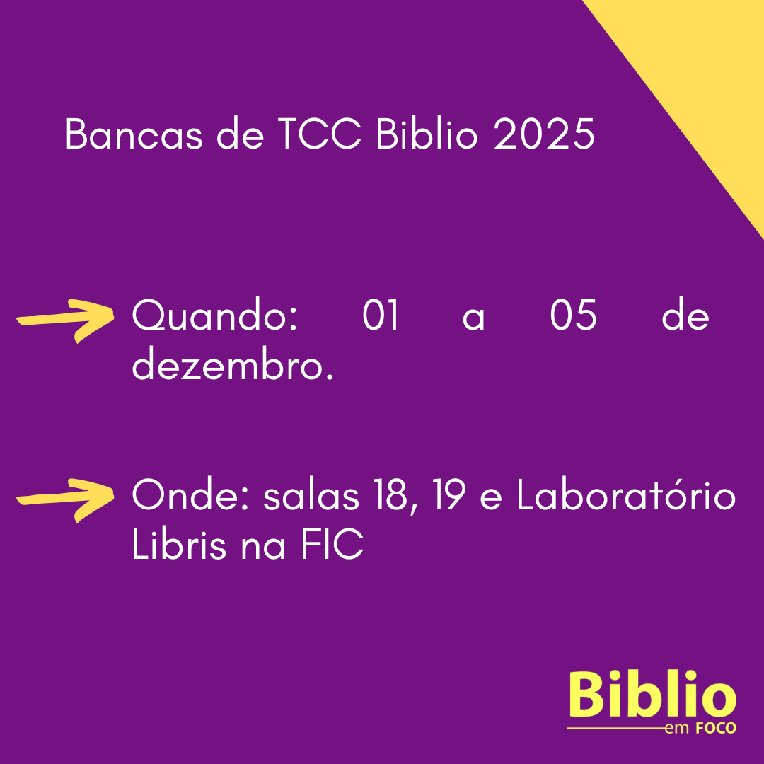 Entre os dias 01 e 05 de dezembro de 2025, na Faculdade de Informação e Comunicação, acontecerão as bancas de defesas dos Trabalhos de Conclusão de Curso, do curso de biblioteconomia presencial. Participe!